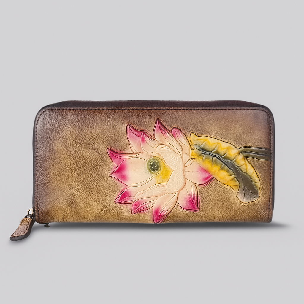 Bathed in gentle light, Lumina captures the tranquil essence of a single lotus in bloom, a timeless symbol of purity, strength, and awakening. Each hand-tooled petal, brushed in soft shades of pink and gold, unfolds against a backdrop of warm, earthen tones, glowing with an inner radiance as though lit from within. The composition is minimalist yet profound, a quiet homage to the beauty of stillness and the elegance of restraint. Lumina speaks to the harmony between craftsmanship and calm art that breathes, glows, and endures.