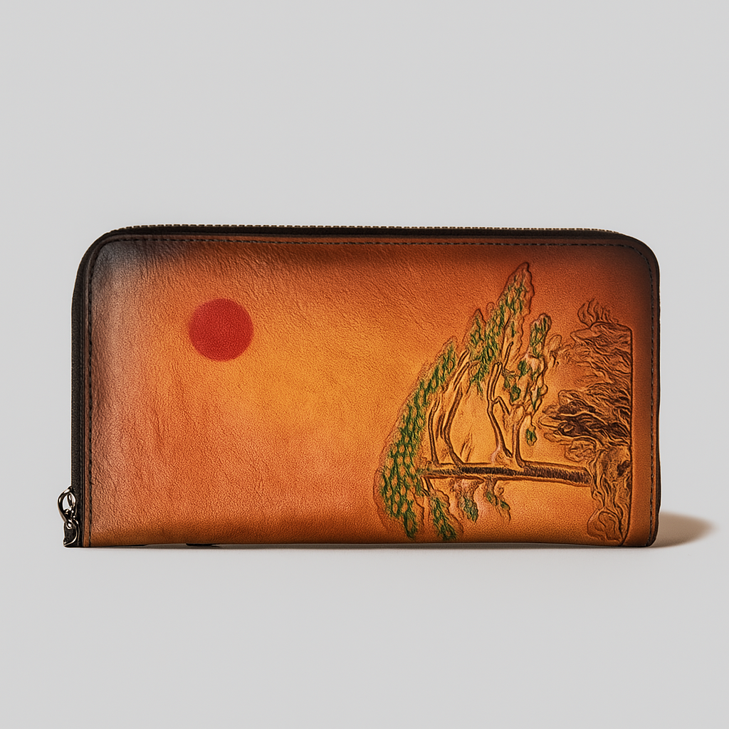 Crafted from premium first-layer cowhide leather, this wallet offers exceptional durability with a naturally soft, refined touch. Its medium-soft structure provides a comfortable feel while maintaining its shape over time. Designed in a timeless retro style, it features a secure zipper closure and a neatly finished polyester lining.