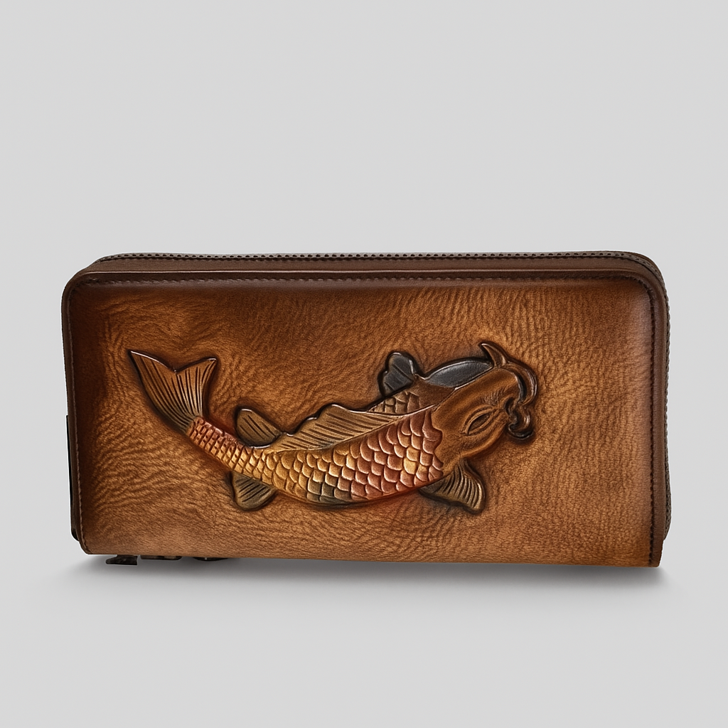 Inspired by the grace and symbolism of the koi fish, the Koiya Collection showcases a beautifully sculpted design that embodies strength, prosperity, and perseverance. Each piece features meticulous hand-tooled detailing, giving the koi’s flowing form and textured scales a lifelike depth. Paired with rich, expressive colors, Koiya brings together artistry and meaning perfect for those who appreciate accessories that carry both elegance and cultural significance.