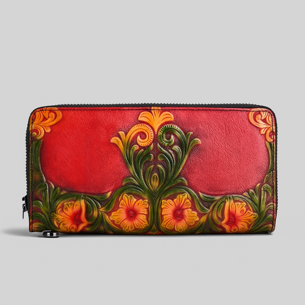 Alive with rhythm and radiance, Verdantia celebrates nature’s boundless vitality through the language of leather and light. Hand-tooled leaves rise in graceful symmetry, unfurling into blossoms that glow with a painter’s touch vibrant yet composed, exuberant yet refined. The design evokes the spirit of an eternal garden, where every curve breathes life and every hue whispers of renewal. A testament to craftsmanship in its purest form, Verdantia embodies the harmony between nature’s grandeur and human artistry lush, sculptural, and eternally in bloom.