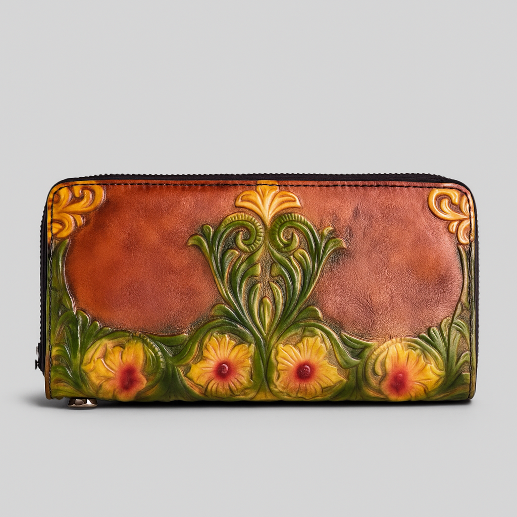 Alive with rhythm and radiance, Verdantia celebrates nature’s boundless vitality through the language of leather and light. Hand-tooled leaves rise in graceful symmetry, unfurling into blossoms that glow with a painter’s touch vibrant yet composed, exuberant yet refined. The design evokes the spirit of an eternal garden, where every curve breathes life and every hue whispers of renewal. A testament to craftsmanship in its purest form, Verdantia embodies the harmony between nature’s grandeur and human artistry lush, sculptural, and eternally in bloom.