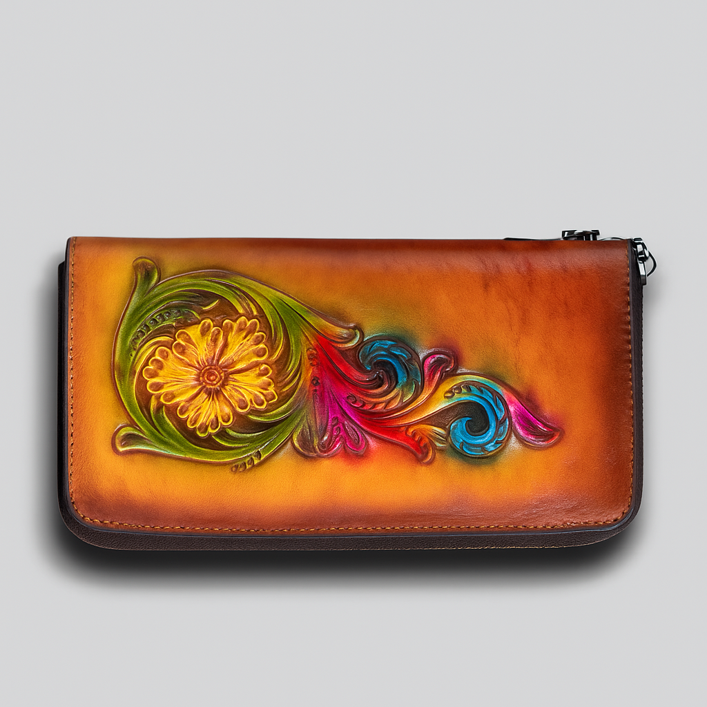 A celebration of light in motion, Aurora captures the splendor of dawn as it awakens the world in color. A single hand-tooled bloom radiates from swirling scrolls, its petals alive with iridescent energy and grace. The gradient tones from amber warmth to deep shadow evoke the celestial dance of morning skies, where illumination meets artistry. Every curve gleams with vitality, every hue sings of renewal. Aurora is not merely an adornment, but a luminous statement where craftsmanship becomes color, and color becomes poetry in motion.